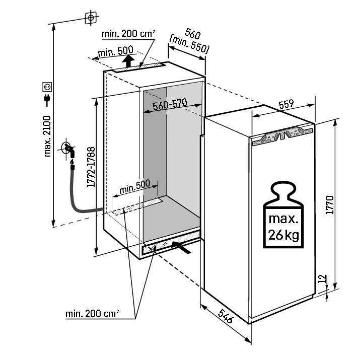 - Toote mõõtmed (K x L x S): 1770 x 559 x 546 mm