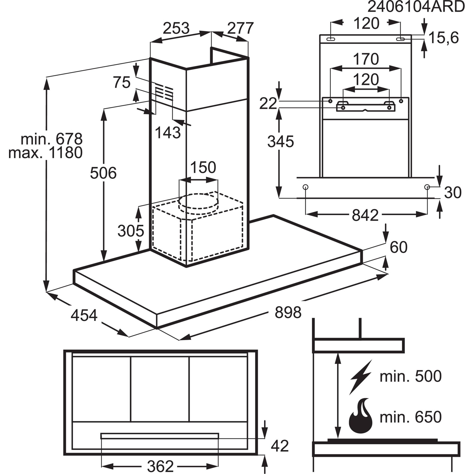 • Õhupuhasti kõrgus pliidist: elektripliit ≥ 50 cm, gaasipliit ≥ 65 cm