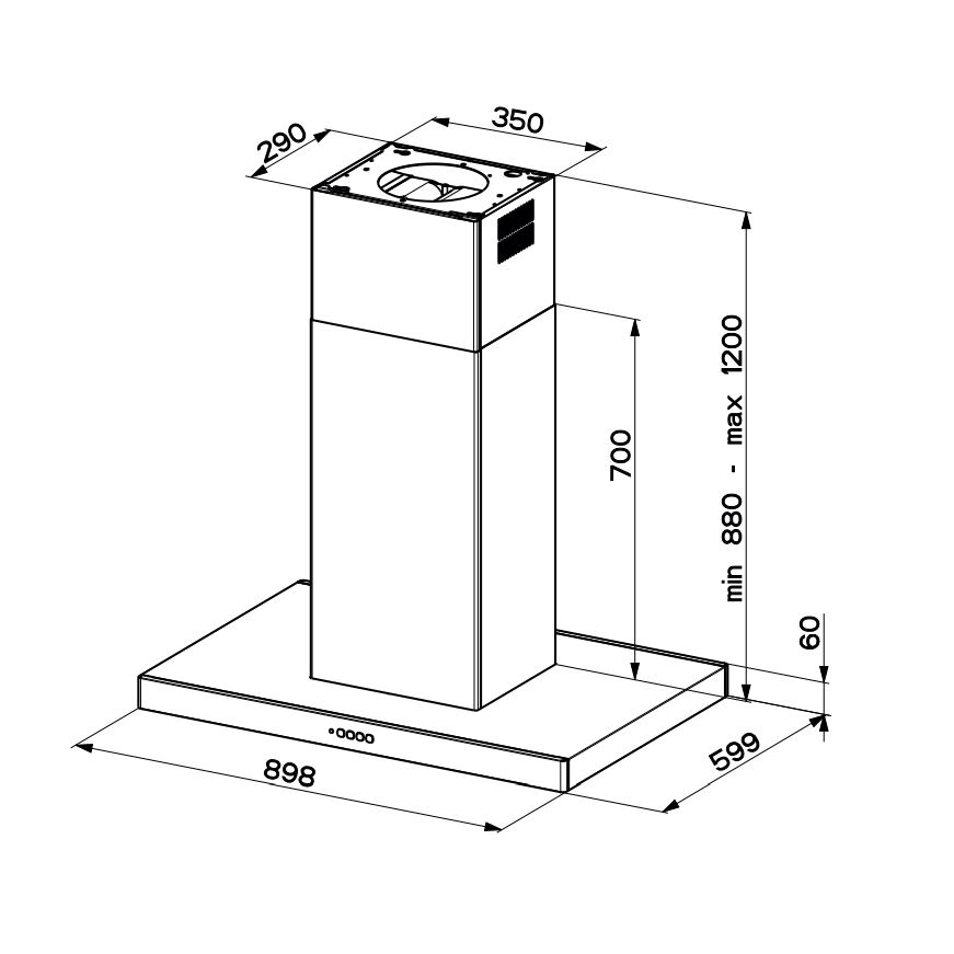- Seadme mõõtmed (K x L x S): 880-1200 x 898 x 599 mm