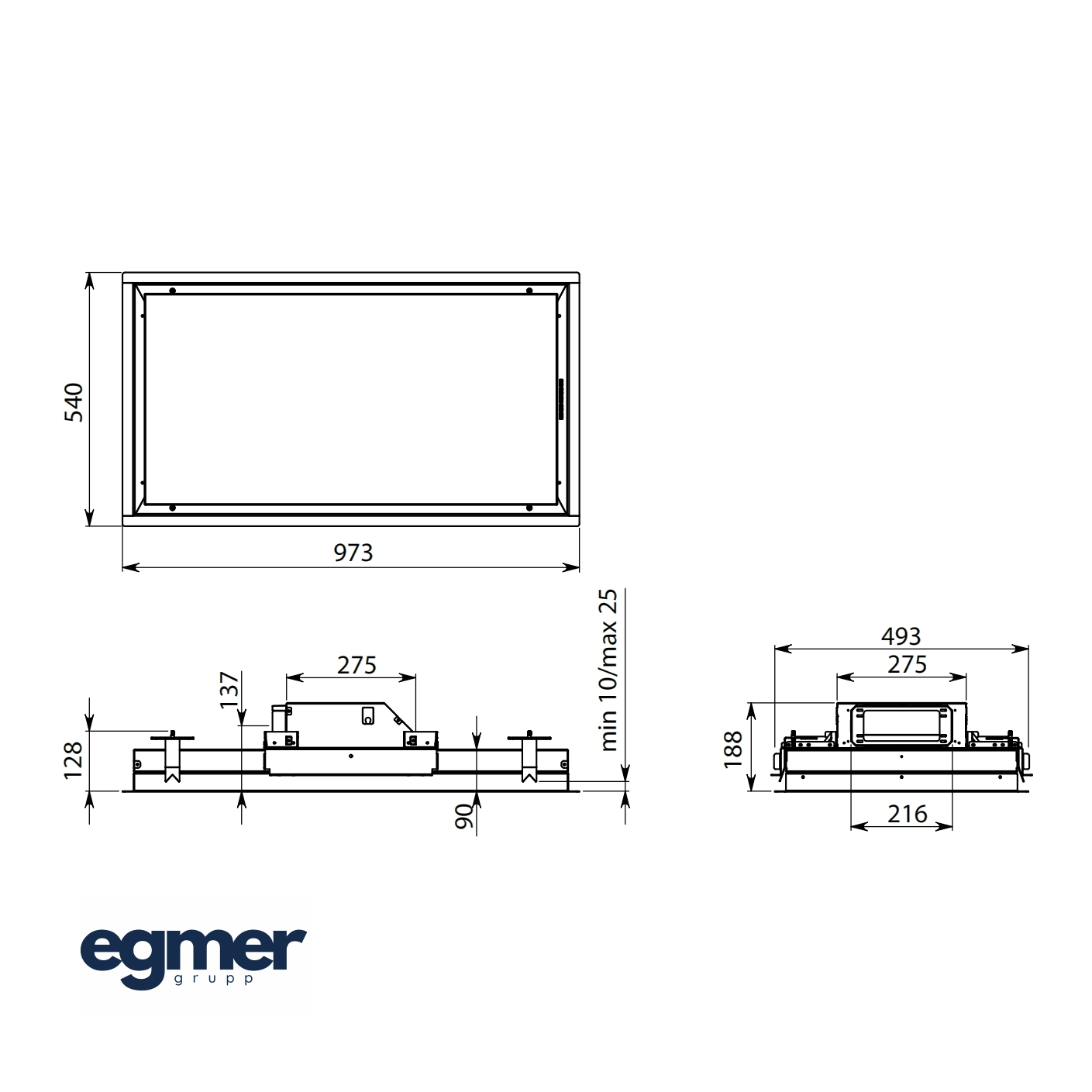 - Seadme mõõtmed mootorita paigaldusel (KACL.789) K x L x S: 188 x 973 x 540 mm