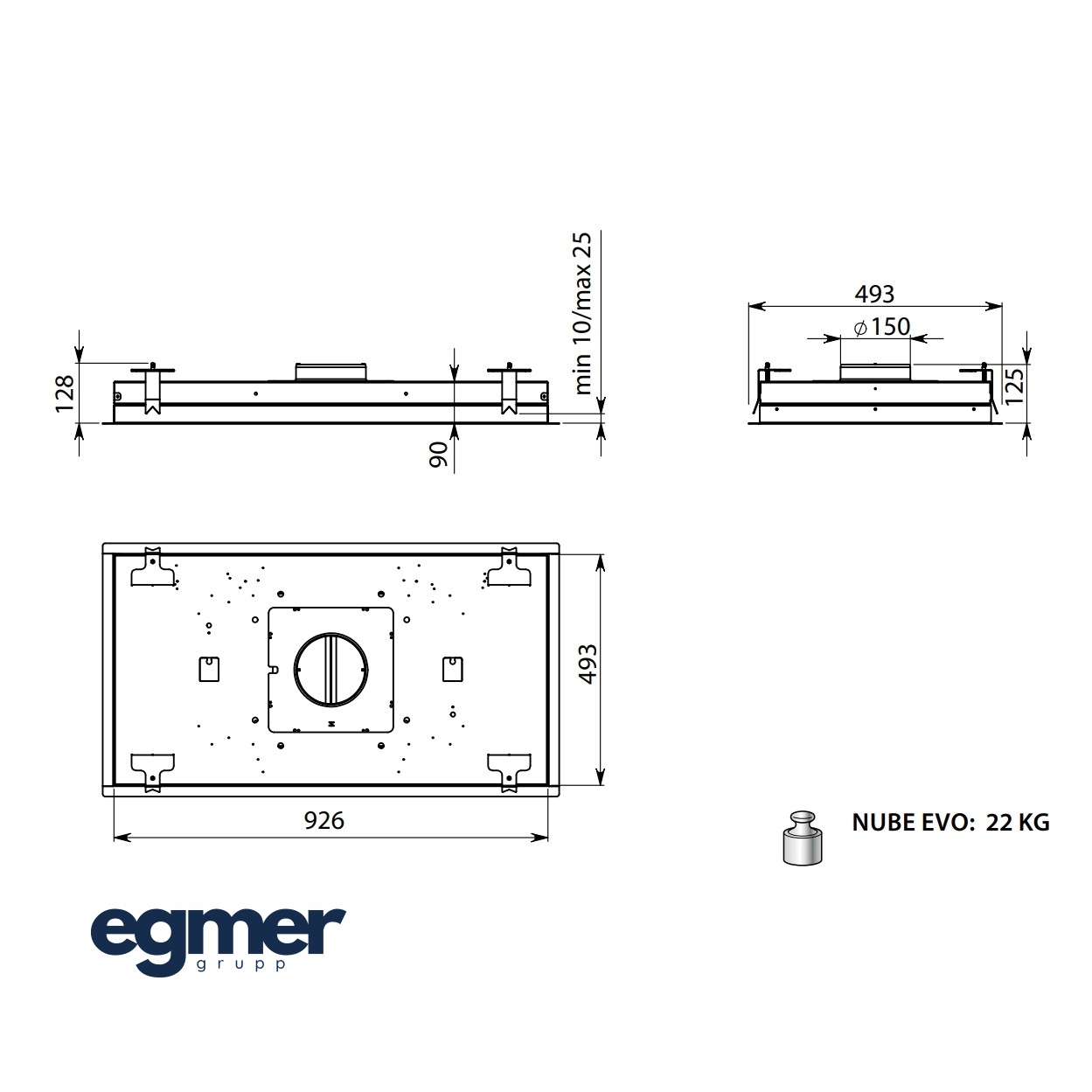- Seadme mõõtmed mootorita paigaldusel ( KACL.398) K x L x S: 128 x 973 x 540 mm