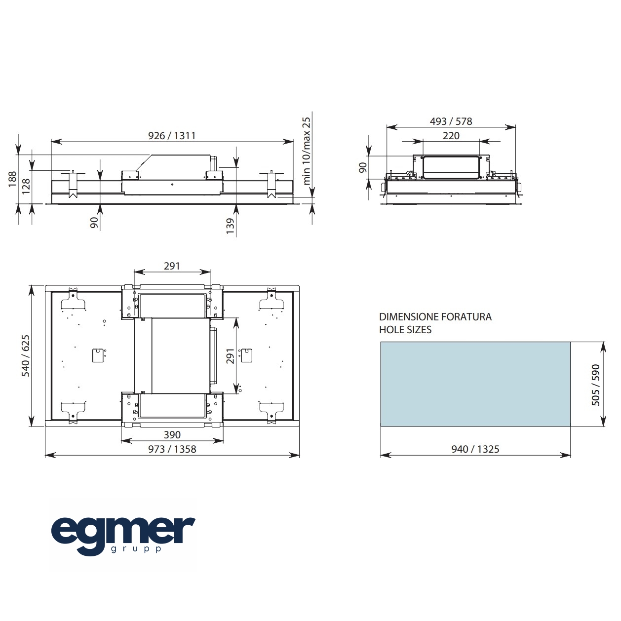 - Seadme mõõtmed mootorita paigaldusel ( KACL.398) K x L x S: 128 x 973 x 540 mm
