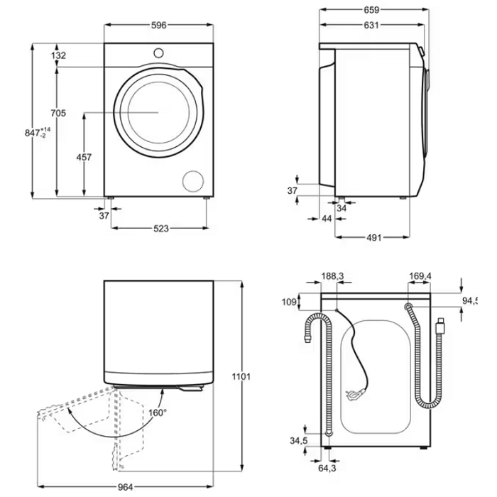 • Seadme mõõtmed (K x L x S): 847 x 597 x 631 mm