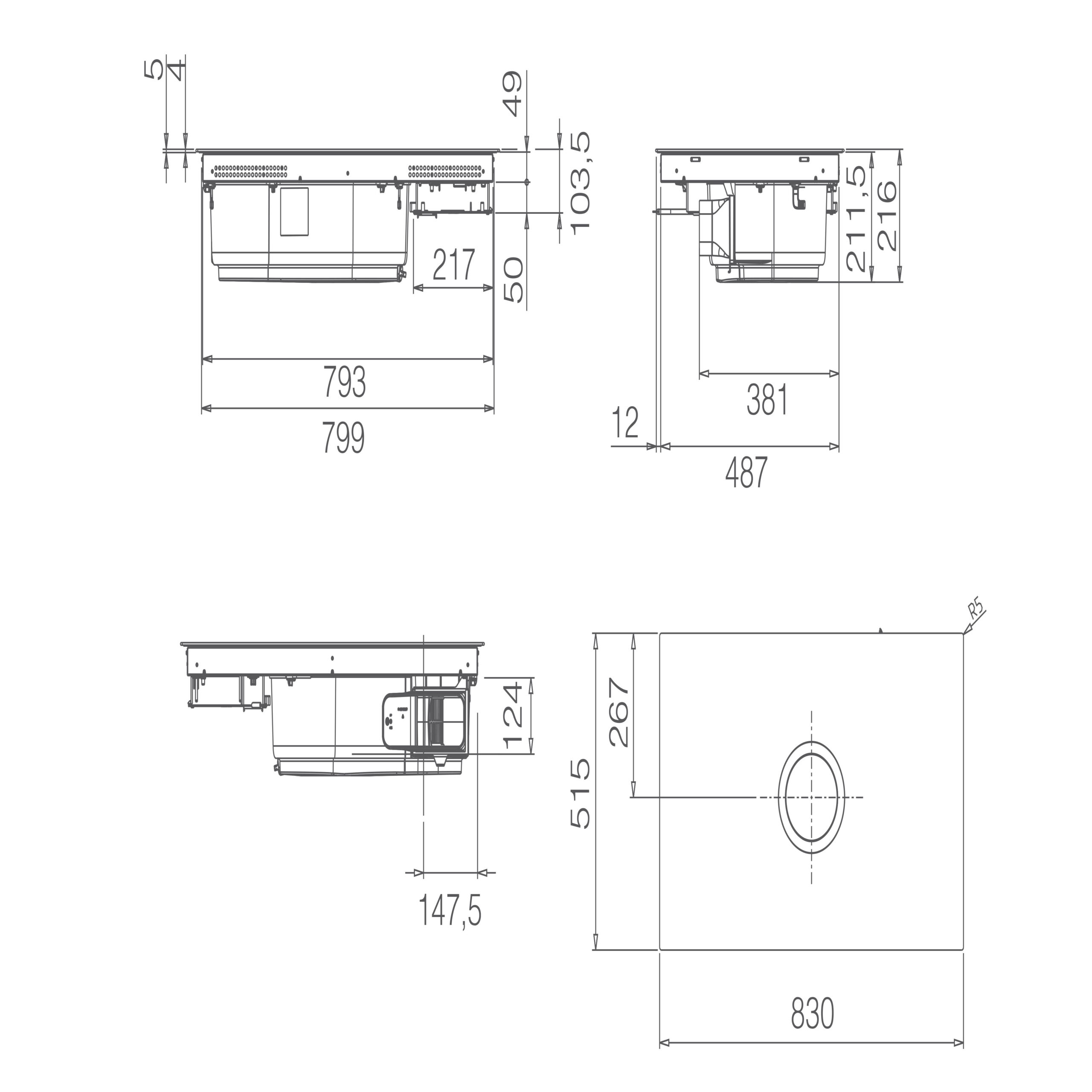 Parem eesmine keeduala: 191 x 210 mm – 2,1 /3 kW - Silla funktsioon: 2
