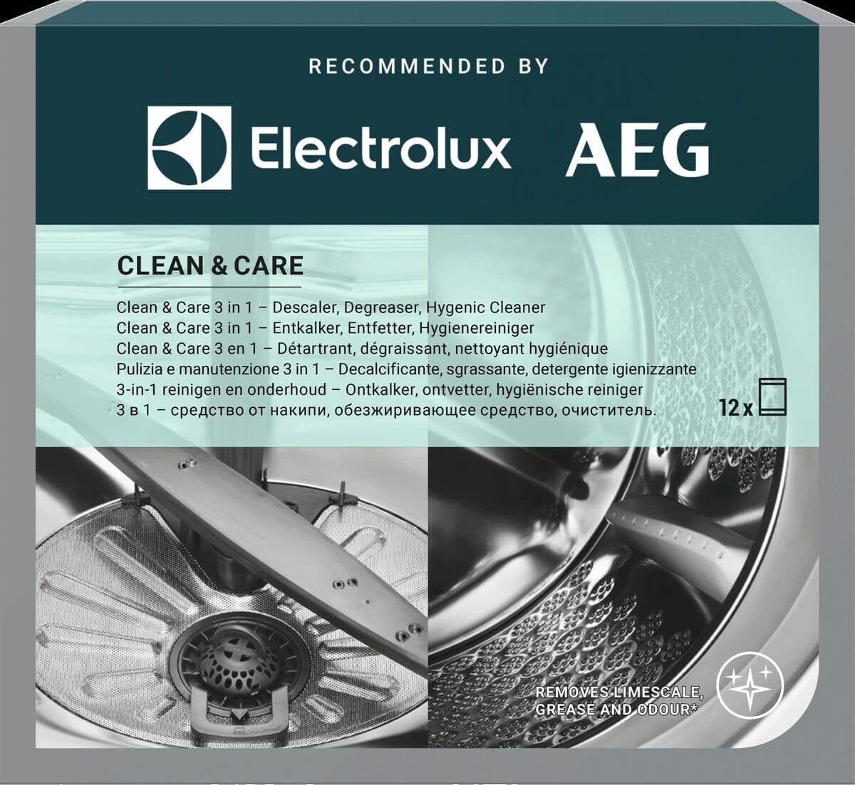 Rasvajääkide ja katlakivi eemaldaja Clean and Care 3-ühes aitab hoida seadmed parimas korras. Toode eemaldab rasvajäägid ja katlakivi ning hoiab teie nõudepesumasina ja pesumasina puhtana.