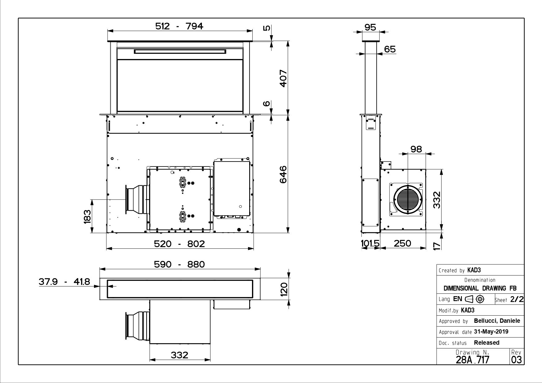 | Õhu vooluhulk min/max/int m3/h | 150-630 |