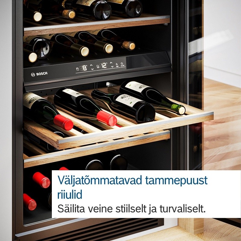 Tänu 2 eraldi temperatuuritsoonile on võimalik seadistada punaste ja valgete veinide hoiustamiseks täpselt optimaalne temperatuur. Temperatuuritsoonid on üksteisest sõltumatud ja saate valida kummagi tsooni temperatuuri täpselt enda vajadustest lähtuvalt. Bosch võimaldab teil endal otsustada, kas soovite, et üleval oleksid punased või valged veinid.